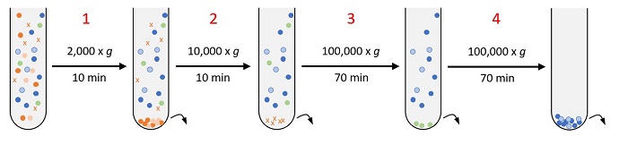 4. Isolation of exosomes. At this stage, the sample may still contain some larger vesicles but should be enriched for exosomes.